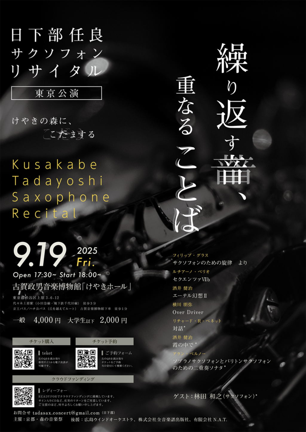 2025年9月19日 〈繰り返す音、重なることば〉日下部任良サクソフォンリサイタル東京公演