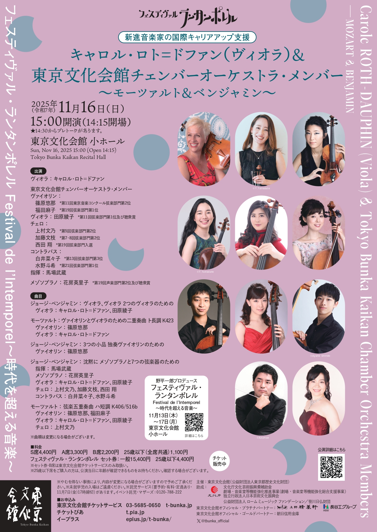2025年11月16日 フェスティヴァル・ランタンポレル  キャロル・ロト=ドファン(ヴィオラ)&東京文化会館チェンバーオーケストラ・メンバー~モーツァルト&ベンジャミン~