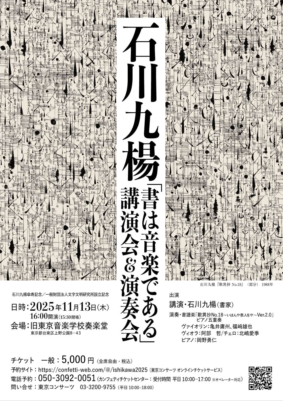 2025年11月13日 石川九楊「書は音楽である」講演会&演奏会