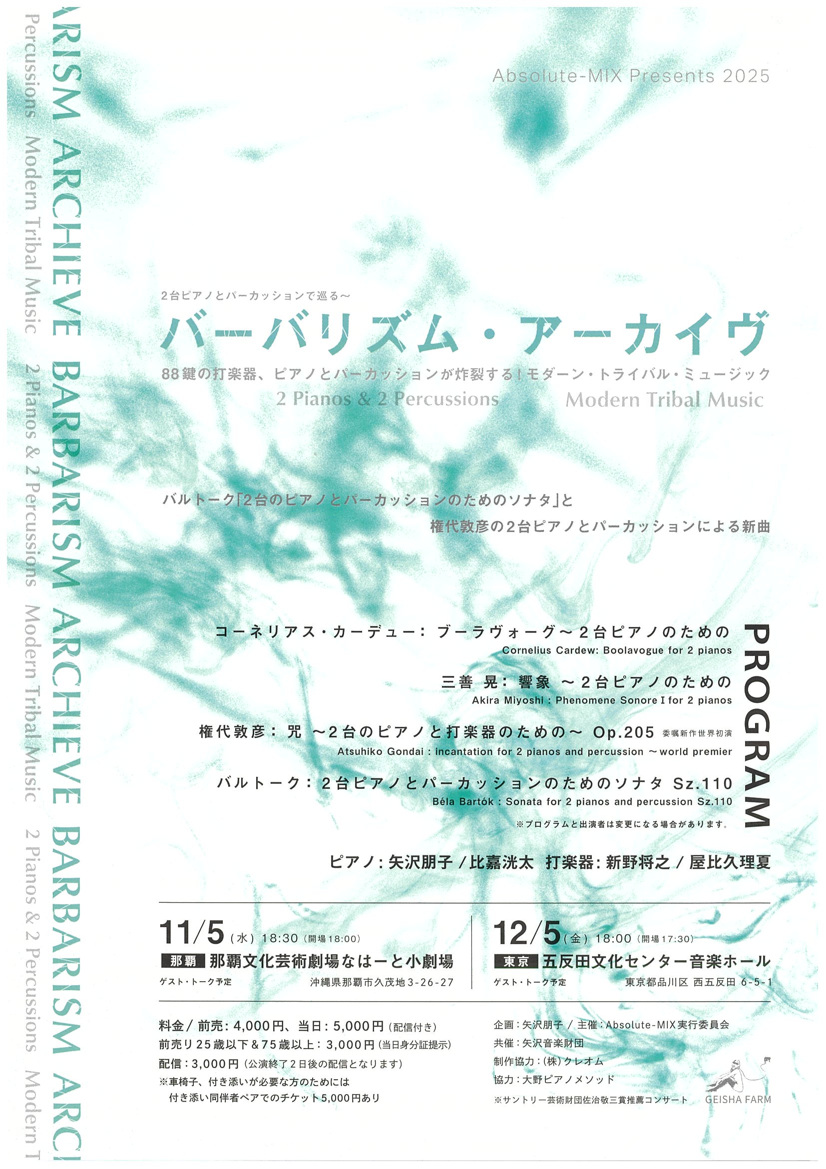 2025年11月15日 Absolute-MIX Presents 2025 2台ピアノとパーカッションで巡る バーバリズム・アーカイヴ