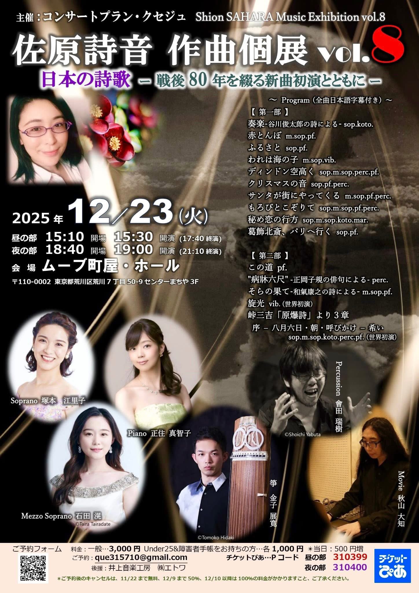 佐原詩音作曲個展vol.8 日本の詩歌 ー戦後80年を綴る新曲初演とともにー