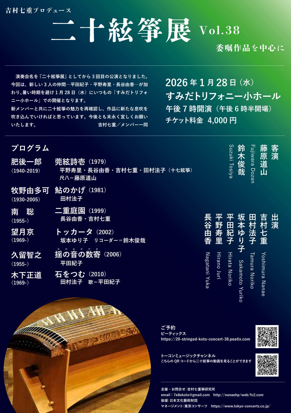 吉村七重プロデュース 二十絃箏展Vol.38 委嘱作品を中心に