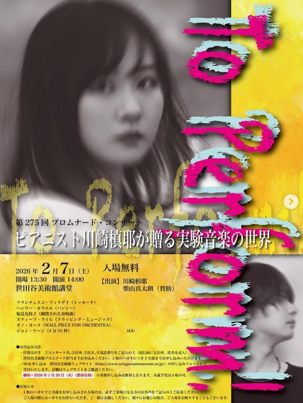 2026年2月7日 世田谷美術館第275回プロムナードコンサート ピアニスト川崎槙耶が贈る実験音楽の世界