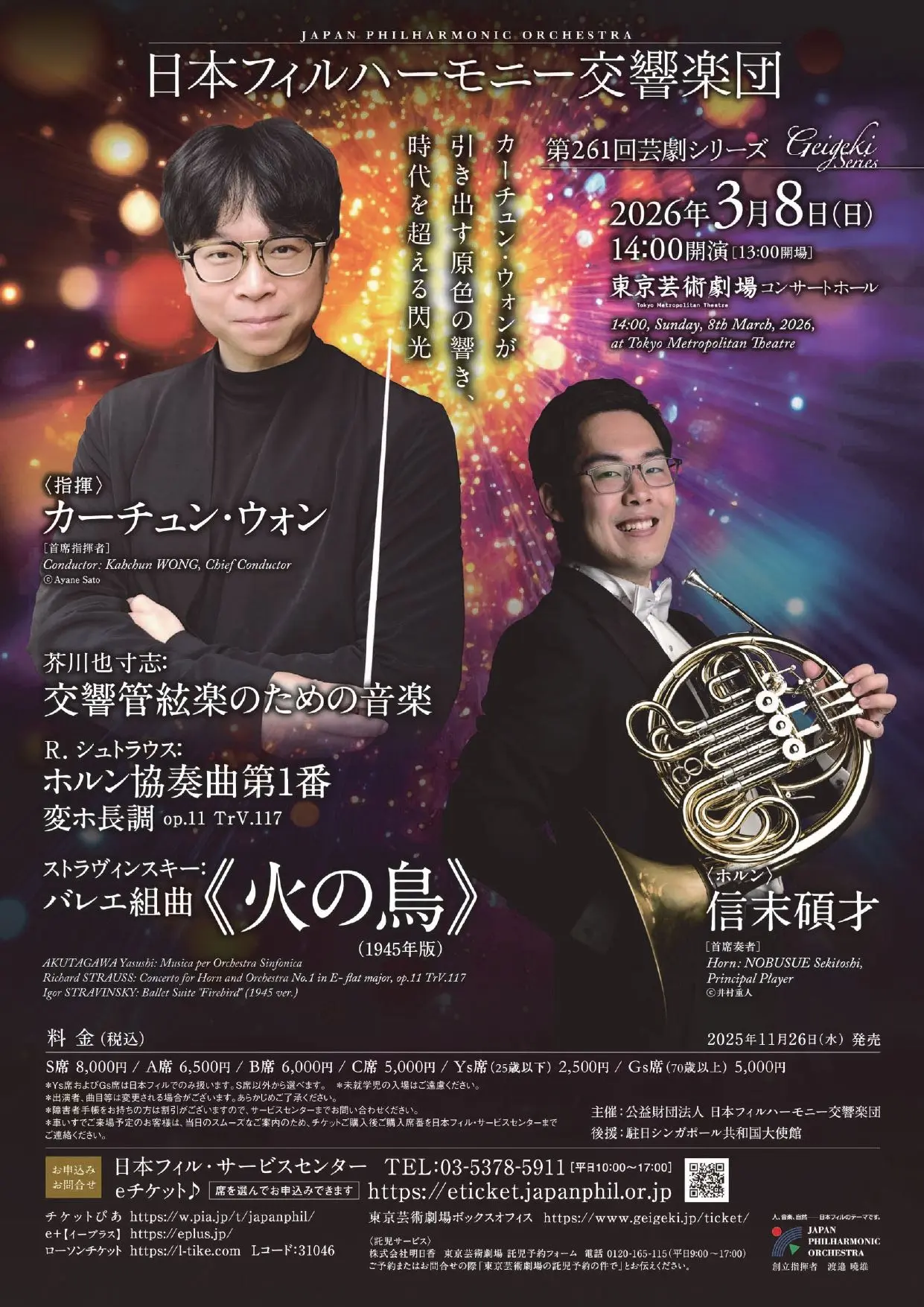 料金:S席 ¥8,000 A席 ¥6,500 B席 ¥6,000 C席 ¥5,000 Gs(70歳以上)席 ¥5,000 Ys(25歳以下)席 ¥2,500