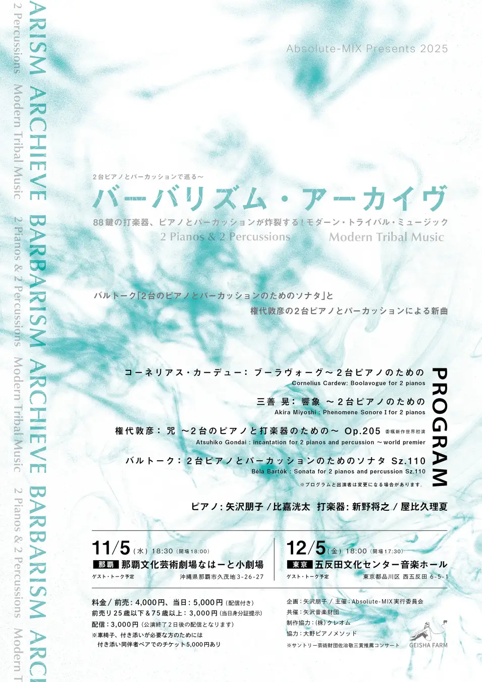 2025年12月5日 『Absolute-MIX Presents 2台ピアノとパーカッションで巡る〜バーバリズム・アーカイヴ』