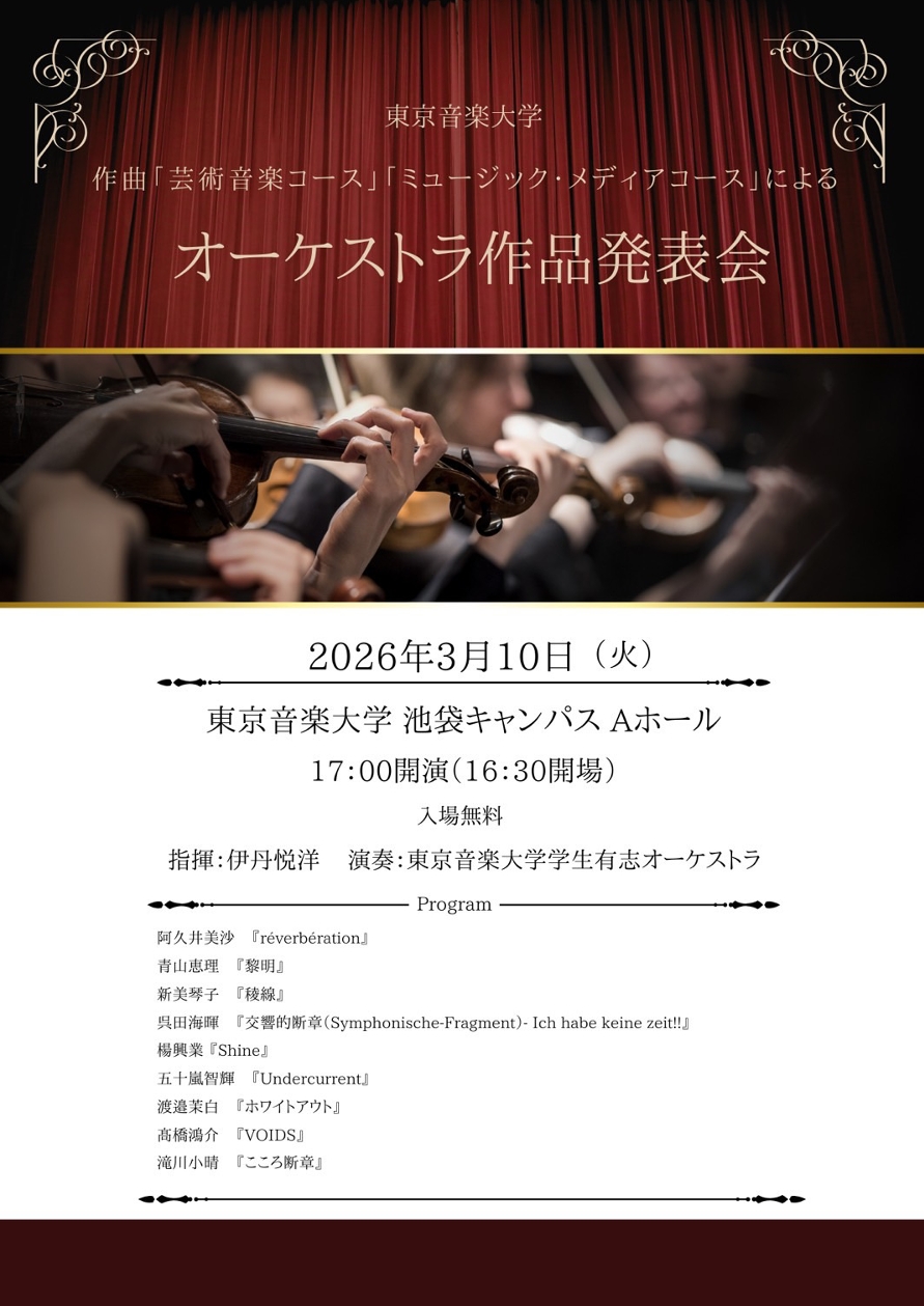 2026年3月10日 東京音楽大学 作曲指揮専攻 作曲「芸術音楽コース」「ミュージック・メディアコース」による オーケストラ作品発表会